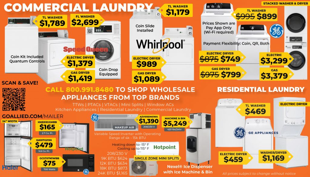 All Your Laundry Needs: Top Load Front Load Stacked Commercial  Residential Allied's Got It